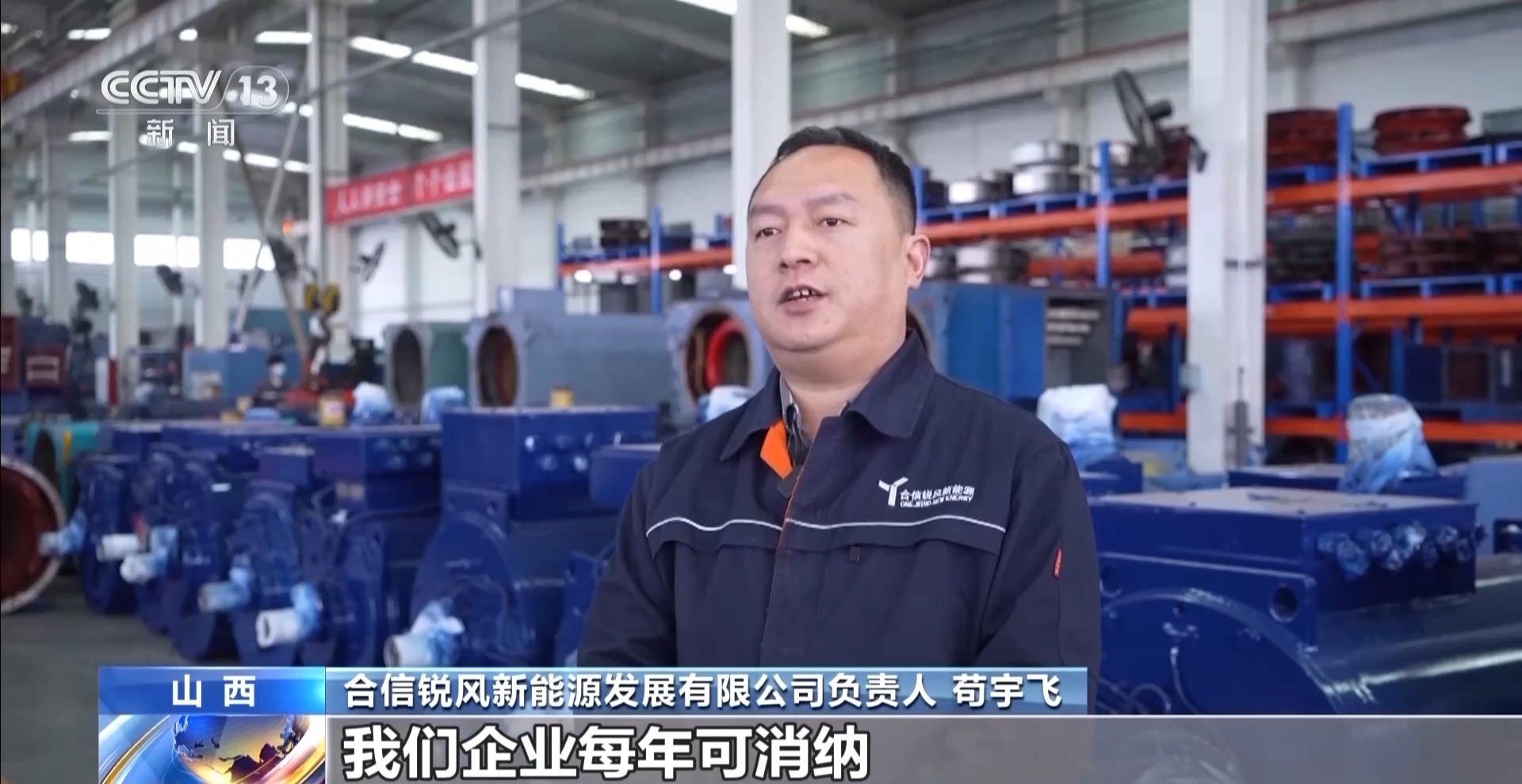 合信銳風新能源發(fā)展有限公司負責人 茍宇飛:我們企業(yè)每年可消納退役各類型風力發(fā)電機500余臺,通過風力發(fā)電機的回收再制造利用,每年可節(jié)約3000余噸鋼材,400余噸銅材,每年可創(chuàng)造約18億度的綠色電能,可減少二氧化碳排放100余萬噸。
