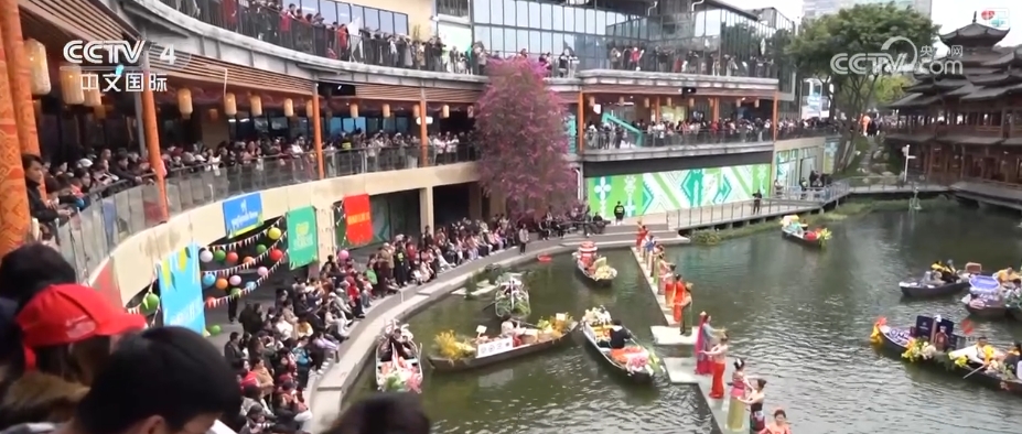 在云南曲靖市師宗縣,當(dāng)?shù)嘏e辦了以“篝火狂歡夜”“潑水祈新?!睘楹诵牧咙c(diǎn)的特色活動(dòng),融合多元內(nèi)容,讓游客沉浸感受壯鄉(xiāng)文化的澎湃活力,讓“三月三”這個(gè)古老的節(jié)日煥發(fā)出新的活力。