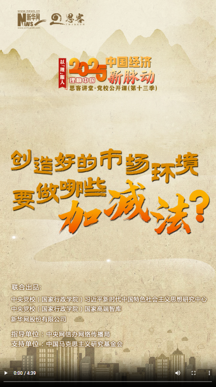 新一季“思客講堂·黨校公開課”《理響中國·以理服人|2025中國經(jīng)濟新脈動》,帶你讀懂2025年經(jīng)濟工作重點。2025年開年以來,杭州“六小龍”刷屏全網(wǎng),掀起科創(chuàng)熱潮。究其原因,離不開當(dāng)?shù)亓己玫臓I商環(huán)境??梢哉f,好的市場環(huán)境,既是城市競爭的關(guān)鍵性“軟實力”,也是經(jīng)濟高質(zhì)量發(fā)展的“硬支撐”。創(chuàng)造好的市場環(huán)境要做哪些“加減法”?如何充分激發(fā)各類經(jīng)營主體活力?中央黨校(國家行政學(xué)院)經(jīng)濟學(xué)教研部講師王松對此進行解讀。