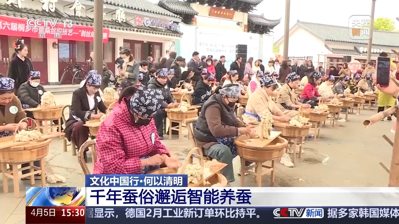 在浙江,流傳著一句俗語——“清明大如年”。浙江是我國絲綢生產(chǎn)和貿(mào)易的中心,清明之后,當(dāng)?shù)匦Q農(nóng)就會開始新一年的忙碌,所以人們通過節(jié)慶活動,祈盼養(yǎng)蠶豐收。隨著現(xiàn)代科技的發(fā)展,在現(xiàn)代化的養(yǎng)蠶工廠里,采桑養(yǎng)蠶的活動已經(jīng)可以擺脫節(jié)氣的束縛,實現(xiàn)了“季季有春天”。