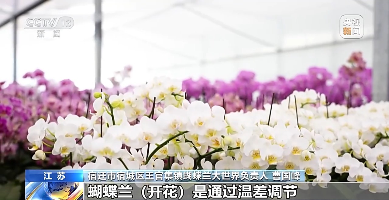 宿遷市宿城區(qū)王官集鎮(zhèn)蝴蝶蘭大世界負(fù)責(zé)人 曹國峰:其實(shí)蝴蝶蘭的自然花期應(yīng)該是農(nóng)歷年開始一直到“五一”,這是自然狀態(tài)。現(xiàn)在我們通過技術(shù)干預(yù),想哪一天開就哪一天開。蝴蝶蘭開花是通過溫差調(diào)節(jié),這個(gè)時(shí)候我們就要用空調(diào),一些恒溫設(shè)備以及除濕設(shè)備進(jìn)行恒溫控制。