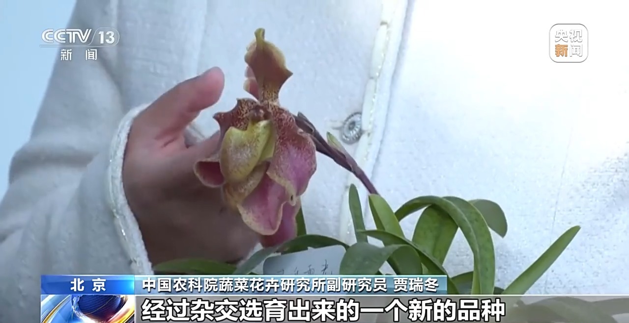 中國農(nóng)科院蔬菜花卉研究所副研究員 賈瑞冬:我們所做的工作就是怎么把物種繁殖利用起來。比如同色兜蘭和帶葉兜蘭經(jīng)過雜交選育出來的一個(gè)新的品種“靈秀霞光”,它的花兼具了同色兜蘭和帶葉兜蘭的優(yōu)點(diǎn),開不止一朵花,花瓣還比較厚,花比較大,花期會比較長。