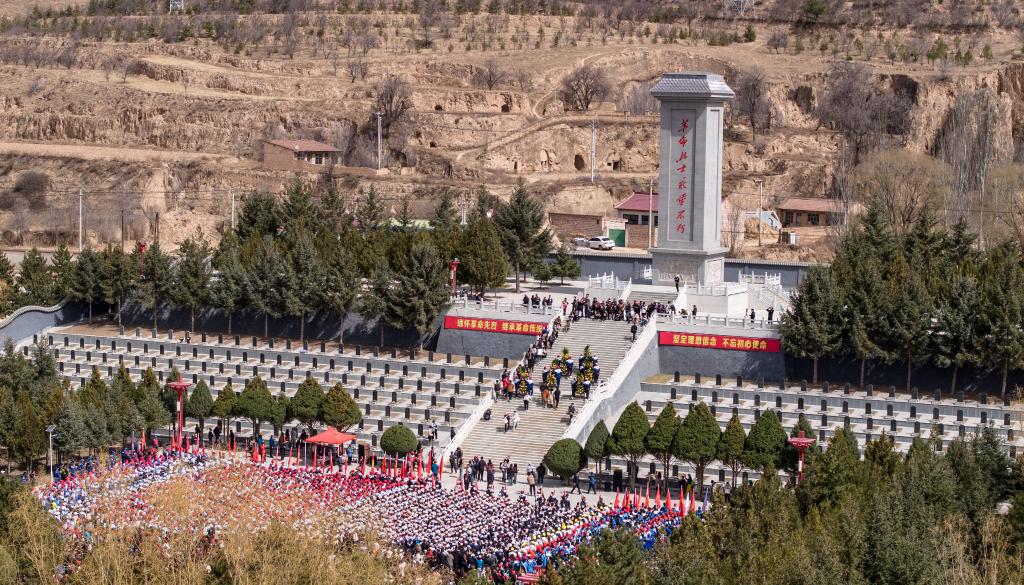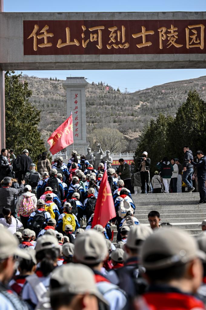 4月3日,參加徒步祭英烈活動(dòng)的師生抵達(dá)位于彭陽縣的任山河烈士陵園。