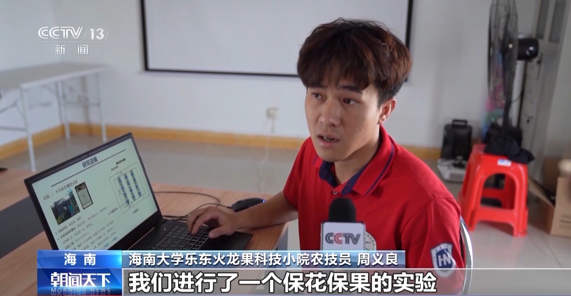 海南大學樂東火龍果科技小院農(nóng)技員 周義良:根據(jù)這個現(xiàn)狀,我們進行了一個?;ū9膶嶒灒ㄟ^不同濃度的硼肥、氨基酸肥、授粉和溫度調(diào)控來進行實驗,坐果率提升了20%左右。
