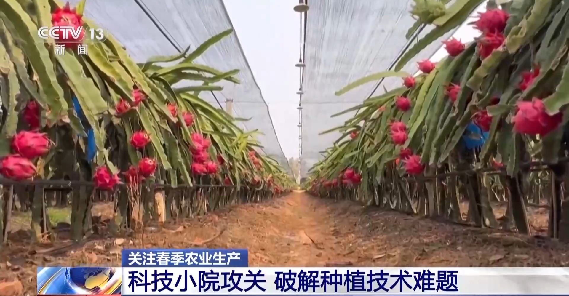 不僅僅是燕窩果,像傳統(tǒng)的熱帶水果火龍果的種植難題,也正在通過科技小院的技術得以攻破。晚上八點多,尖峰鎮(zhèn)方圓幾十里火龍果種植園區(qū)燈火通明,而夜晚點亮燈光的目的是給火龍果補光,讓枝條能夠長出花苞并順利開花?;瘕埞_花時間一般在晚上八點到十二點之間,為此科技小院的技術人員還研發(fā)了可以短時間完成授粉的技術模式。