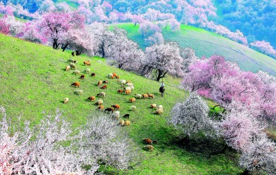 這是大自然獨(dú)有的饋贈(zèng)。這片廣袤的土地上,孕育著壯觀的杏樹群落,更有14世紀(jì)遺留下來(lái)的原始野杏林。每年3月下旬,從吐魯番盆地到帕米爾高原再到伊犁河谷,杏花次第開放。它耐旱、抗寒、不懼貧瘠,以頑強(qiáng)的生命力將根系深深扎進(jìn)大地,綻放出明艷繁茂、縱情熱烈的花朵。