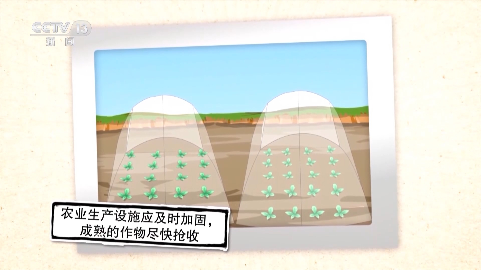 農(nóng)業(yè)生產(chǎn)設(shè)施應(yīng)及時加固,成熟的作物盡快搶收。