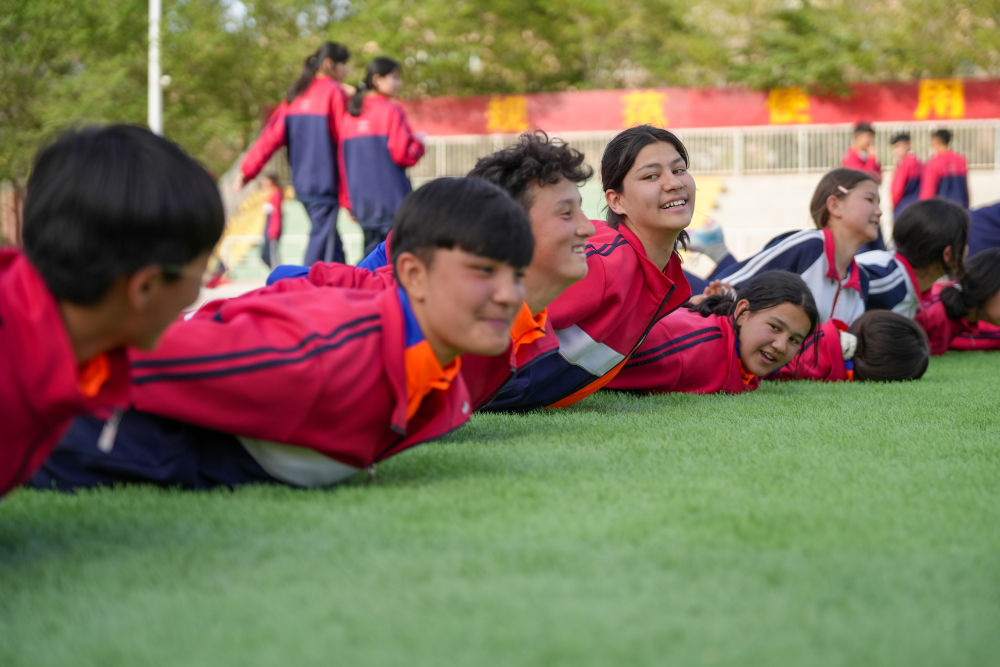 ↑4月10日,在阿圖什市硝魯克中學(xué),艾妮再進行訓(xùn)練。新華社記者 徐宏巖 攝