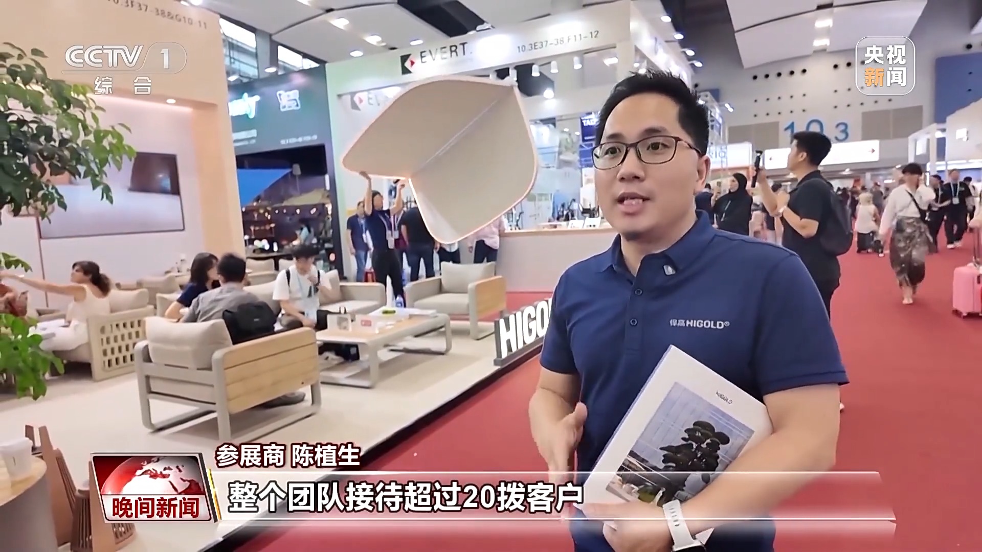 在廣交會(huì)現(xiàn)場(chǎng),全球客商并沒(méi)有感受到中國(guó)企業(yè)因關(guān)稅沖擊帶來(lái)信心減弱。傳統(tǒng)制造企業(yè)選擇“品牌出?!睉?zhàn)略,從被動(dòng)接單到主動(dòng)輸出品牌和標(biāo)準(zhǔn),以創(chuàng)新設(shè)計(jì)與技術(shù)突破為亮點(diǎn),實(shí)現(xiàn)傳統(tǒng)產(chǎn)業(yè)向高端化、智能化的轉(zhuǎn)變,從賣(mài)產(chǎn)品到賣(mài)品牌的升級(jí)。戶(hù)外家居館的展位上,參展商正在展示一款不久前剛剛斬獲國(guó)際大獎(jiǎng)的遮陽(yáng)傘。