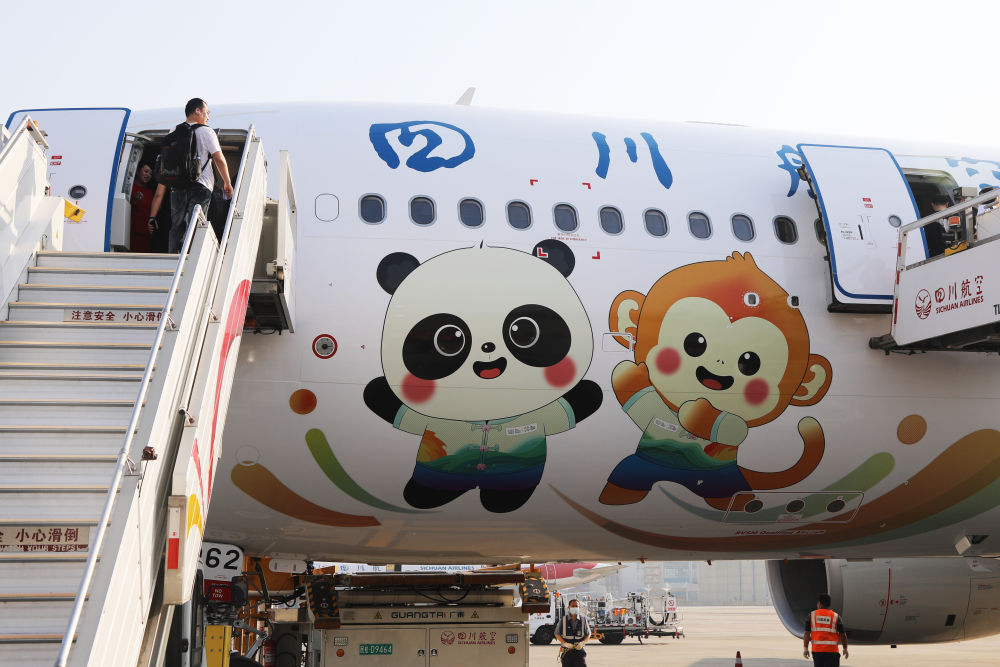 藍(lán)天白云之上,一架?chē)娡恐啥际肋\(yùn)會(huì)吉祥物“蜀寶”“錦仔”的空客A330寬體客機(jī),在萬(wàn)眾矚目中一飛沖天……4月18日,四川航空首架“成都世運(yùn)號(hào)”主題涂裝飛機(jī)首航。擁有2300多年建城史的成都,正以創(chuàng)新精神和飽滿熱情,在“家門(mén)口”迎接世運(yùn)會(huì)這一國(guó)際體育盛會(huì)的到來(lái)。