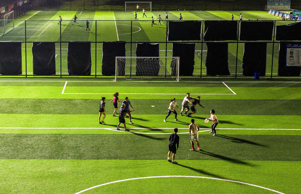 市民在成都市錦江體育公園足球場(chǎng)里玩飛盤(pán)。(資料圖)新華社記者 江宏景 攝