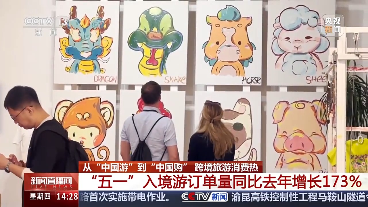 自去年我國(guó)推出一系列免簽政策以來,上海入境外籍游客大幅增加,一季度接待入境游客174.3萬人次,同比增長(zhǎng)37.1%。在眾多外國(guó)游客喜愛打卡的地標(biāo)田子坊,琳瑯滿目的花茶、瓷器、剪紙等中國(guó)特色商品受到外國(guó)消費(fèi)者的追捧。