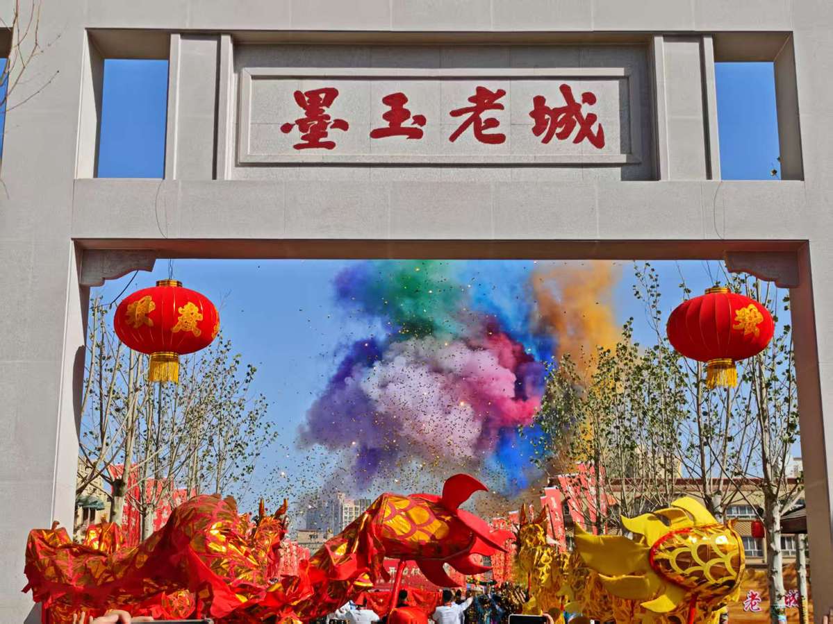 這是5月1日墨玉老城開(kāi)城儀式上的舞龍表演。