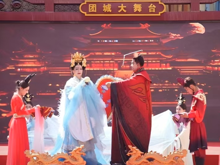 5月1日上午,新疆和田地區(qū)和田團(tuán)城、墨玉老城兩大景區(qū)同步舉行盛大的開(kāi)城儀式。在和田團(tuán)城,和田市文工團(tuán)與新玉演藝集團(tuán)聯(lián)袂演繹新編沉浸式舞劇《西巡傳說(shuō)》。作為開(kāi)城儀式的重頭戲,舞劇《西巡傳說(shuō)》以《山海經(jīng)》、《穆天子傳》及《竹書紀(jì)年》等歷史文獻(xiàn)記載作為參考,再現(xiàn)周穆王西巡的繁華盛景。徜徉在特色的民居建筑間,游客可偶遇身著熒光色改良艾德萊斯綢服飾走秀的青年模特,觀看到各鄉(xiāng)鎮(zhèn)街道創(chuàng)排的音樂(lè)舞蹈表演。異彩紛呈的巡游活動(dòng)讓烏魯木齊游客馬金玲稱贊:“這里讓人來(lái)了還想來(lái)!”