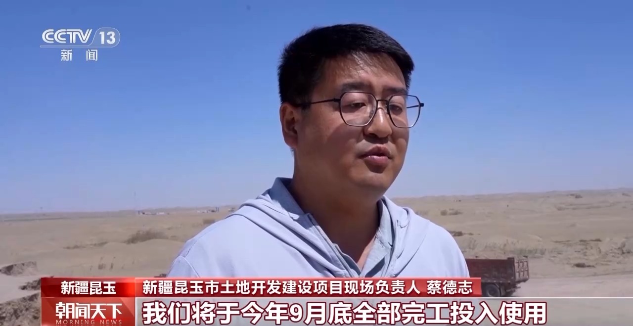 新疆昆玉市土地開發(fā)建設(shè)項目現(xiàn)場負(fù)責(zé)人 蔡德志:我們將于今年9月底全部完工投入使用,已完成現(xiàn)場總進(jìn)度的75%。