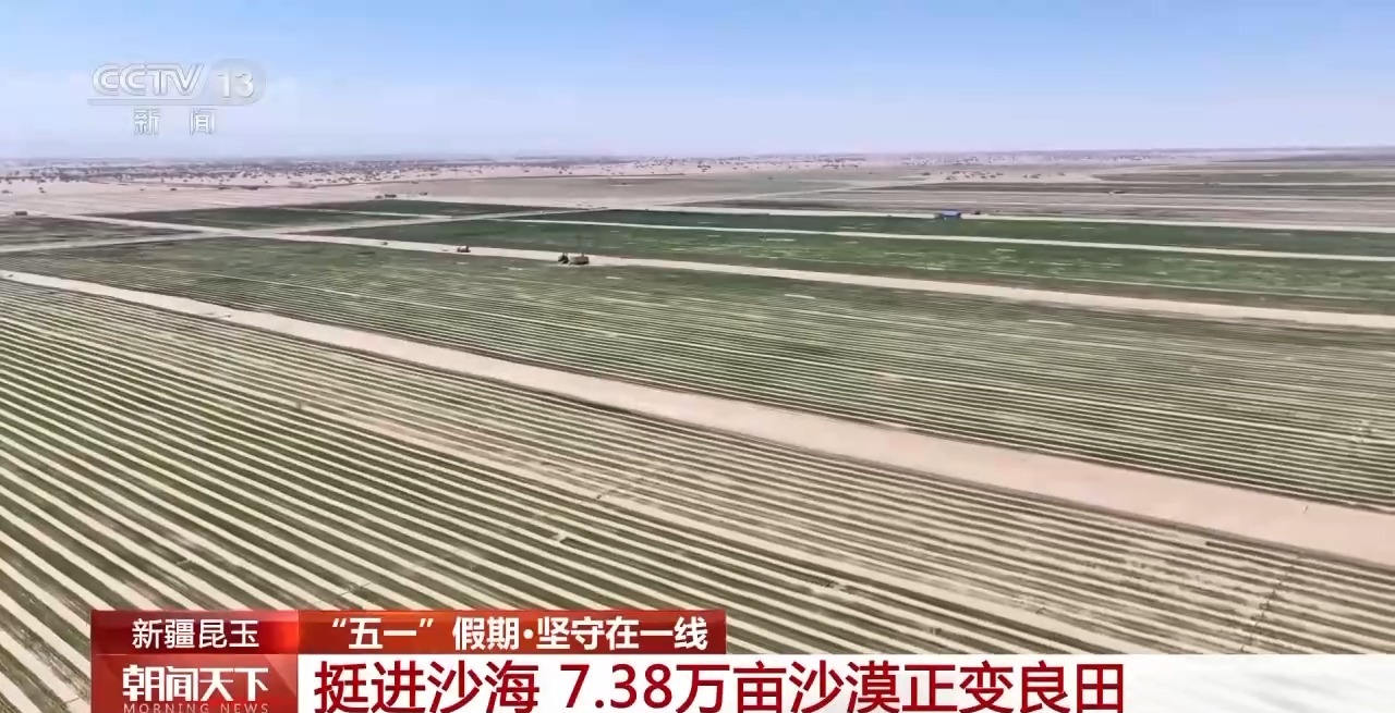 當(dāng)大多數(shù)人享受悠閑的假期時,鏖戰(zhàn)在沙海深處的勞動者沒有停歇。在位于塔克拉瑪干沙漠南緣的新疆昆玉市,7.38萬畝土地開發(fā)建設(shè)項目進(jìn)入攻堅階段,上百臺裝載機(jī)、平地機(jī)來回穿梭進(jìn)行平沙作業(yè)。