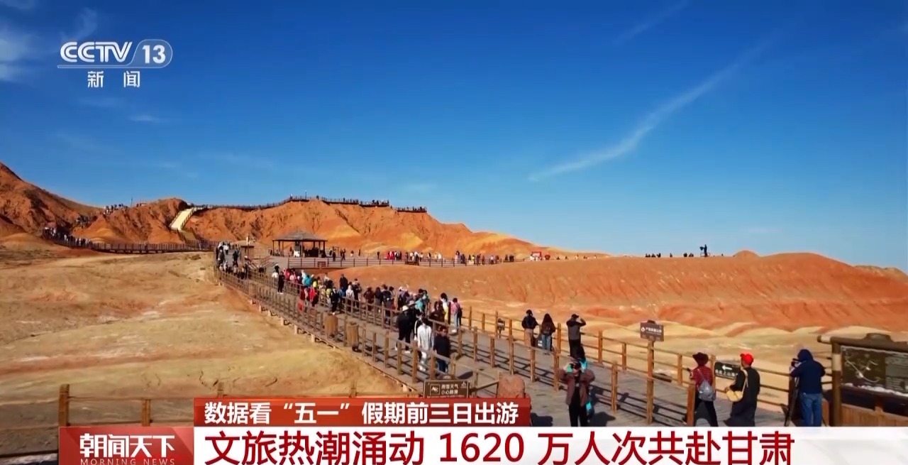 據(jù)甘肅省文旅廳統(tǒng)計,昨天(5月3日),甘肅共接待游客660萬人次,較2024年同期增長5.4%?!拔逡弧奔倨谇?天,全省累計接待游客達(dá)1620萬人次,較2024年同期增長6.86%,文旅市場熱度持續(xù)攀升。