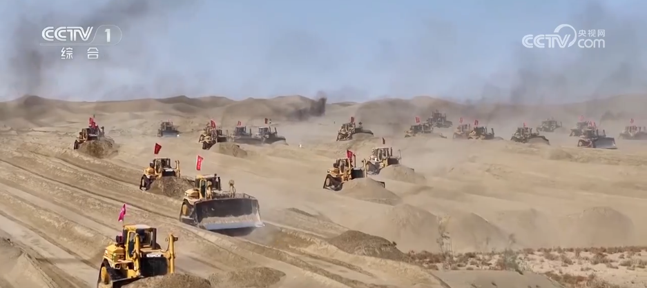 在位于塔克拉瑪干沙漠南緣的新疆昆玉市,7.38萬畝土地開發(fā)建設(shè)項(xiàng)目進(jìn)入攻堅(jiān)階段。上百臺裝載機(jī)、平地機(jī)在沙海中來回奔忙,原本丘壑縱橫的流動沙丘經(jīng)過連續(xù)作業(yè),逐漸變得平整,顯露出田壟的輪廓。