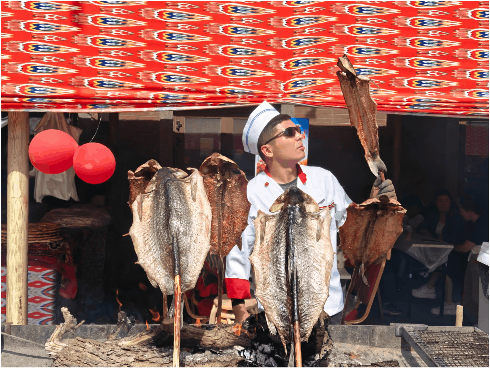 以“烤”為筆、以“味”為墨,2025新疆·尉犁第十二屆羅布人民俗燒烤季繪就一幅熱鬧非凡、充滿地方特色的鮮活畫卷,吸引全疆乃至全國(guó)游客共赴一場(chǎng)美味之約。百余個(gè)燒烤攤位沿青石板路在達(dá)西馕街有序排開,胡楊木炭在烤爐中明明滅滅,將印著艾德萊斯紋樣的遮陽(yáng)棚映成流動(dòng)的彩緞。本屆燒烤季活動(dòng)整合全縣8個(gè)鄉(xiāng)鎮(zhèn)的特色美食與文旅資源,帶動(dòng)200余戶農(nóng)牧民增收,讓烤肉、烤鴿子、烤魚等“鄉(xiāng)味”變身“網(wǎng)紅”,推動(dòng)“舌尖經(jīng)濟(jì)”向“品牌經(jīng)濟(jì)”不斷升級(jí)。