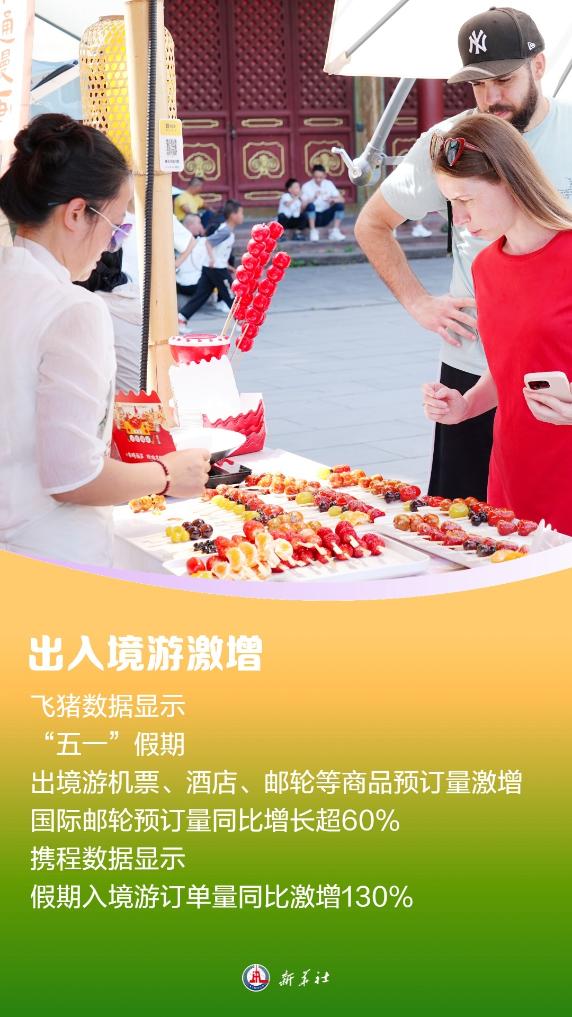 出境游、入境游市場持續(xù)升溫。飛豬數(shù)據(jù)顯示,“五一”假期,出境游機票、酒店、郵輪等商品預訂量激增,其中國際郵輪預訂量同比增長超60%。攜程數(shù)據(jù)顯示,今年“五一”假期期間,入境游訂單量同比激增130%。