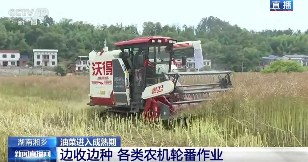 在一眼望不到頭的田里,各類農(nóng)機(jī)正在火熱作業(yè)。首先,不少油菜籽已經(jīng)成熟了,不遠(yuǎn)處,專業(yè)的收割機(jī)正在迅速采收,確保顆粒歸倉。種植戶介紹,今年得益于氣候和農(nóng)田改造,油菜籽的畝產(chǎn)有所增加。