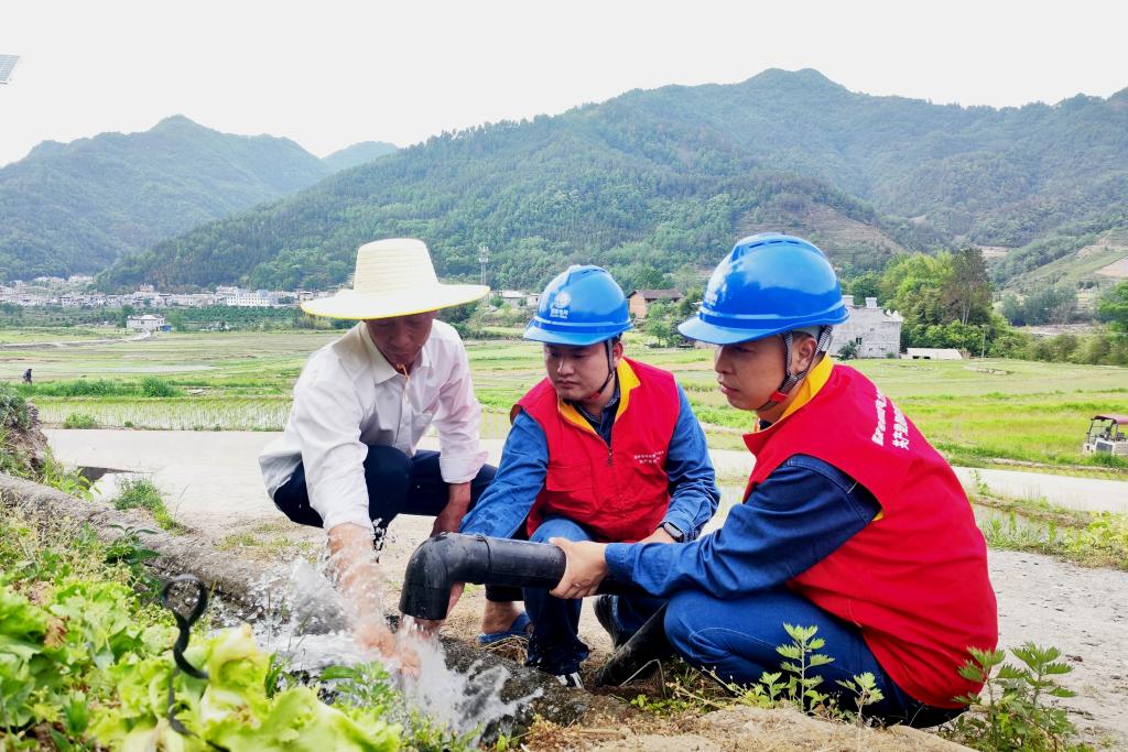 國家電網(wǎng)陜西省平利縣供電公司黨員服務(wù)隊(duì)在陜西平利縣秋河村幫助農(nóng)戶調(diào)試抽水水泵。(陳思源 攝)