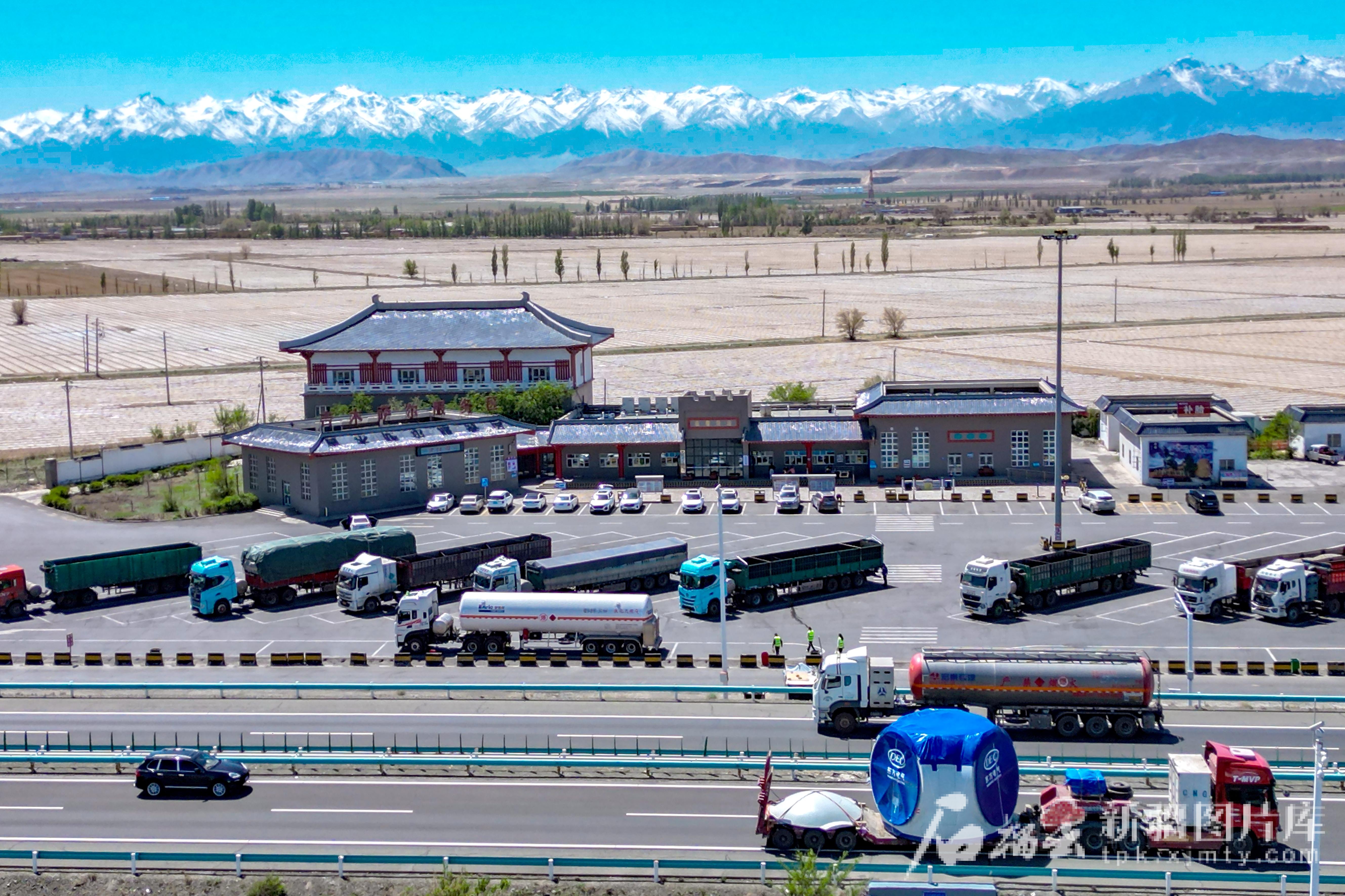 5月9日,京新高速吉木薩爾服務(wù)區(qū),車(chē)輛在服務(wù)區(qū)??俊?/p>