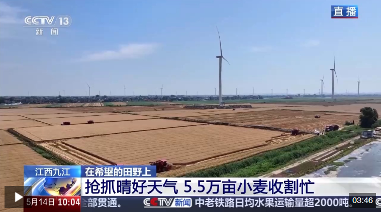 總臺記者 哈樂:從昨天開始,當(dāng)?shù)貙?.5萬畝小麥地里的早熟小麥進(jìn)行集中收割,截至今天上午,收割進(jìn)度就已經(jīng)過半。