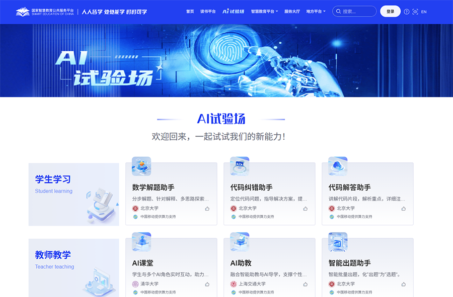 與時(shí)俱進(jìn),今年,國家智慧教育公共服務(wù)平臺掌握了“新能力”。人工智能(AI)試驗(yàn)場上,數(shù)字解題助手、代碼糾錯(cuò)助手、代碼解答助手賦能學(xué)生學(xué)習(xí);AI課堂、AI助教、智能出題助手賦能教師教學(xué);大模型、信息科技平臺賦能科學(xué)研究……