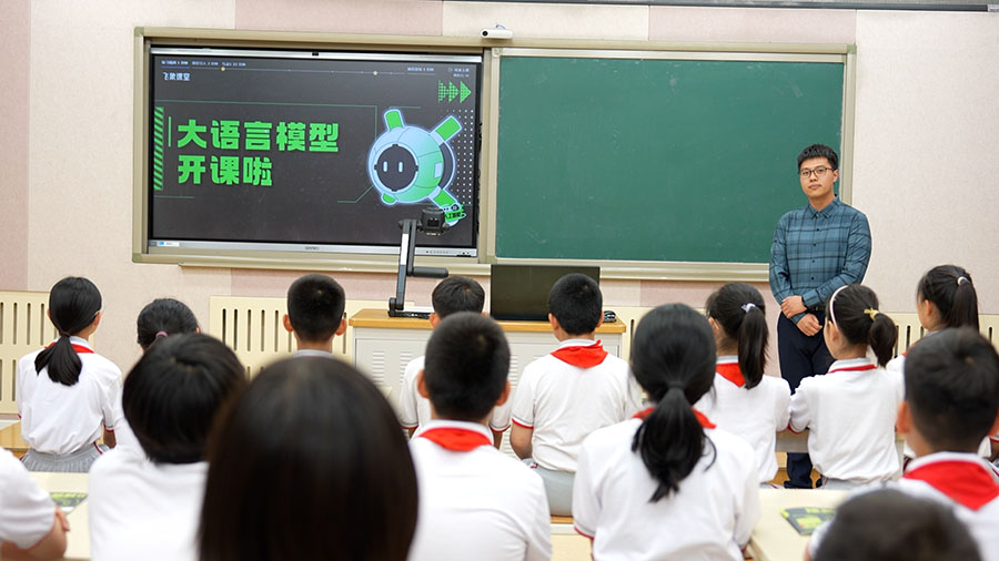 圖為北京府學(xué)胡同小學(xué)師生在上AI課程。新華社記者 楊志剛