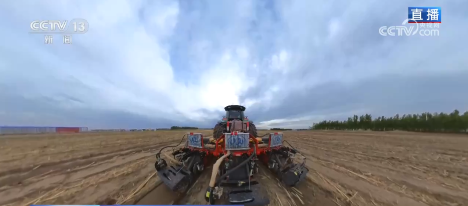 在吉林省通榆縣興隆山鎮(zhèn)的一處玉米示范田,當(dāng)?shù)負(fù)屪デ绾锰鞖?,進(jìn)行最后100畝玉米的播種作業(yè)?,F(xiàn)場幾臺(tái)條耕機(jī)馬力全開,穿梭在廣袤的田野間。緊隨條耕機(jī)之后的播種機(jī),依托搭載的北斗導(dǎo)航系統(tǒng)精準(zhǔn)定位播種。不到十分鐘,十畝玉米田便完成從耕作到播種的全流程作業(yè)。據(jù)合作社的負(fù)責(zé)人介紹,3000畝的玉米田大約2周左右就可以完成播種。
