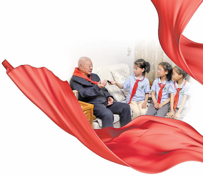 “謝謝你們?!笨讘椀碌皖^看著胸前的紅領(lǐng)巾,笑得像個(gè)孩子。他顫巍巍地想要站起身,但已經(jīng)十分困難。忽然,他張開口,斷斷續(xù)續(xù)地唱了起來:“向前,向前,向前!我們的隊(duì)伍向太陽……”聲音沙啞,甚至有些跑調(diào),但每一個(gè)字都咬得極重?!斑@么多年,他忘了許多事,但這首軍歌,他一句都沒忘,他最喜歡唱這首。”鏗鏘的旋律里,孔毅濕潤了眼眶。