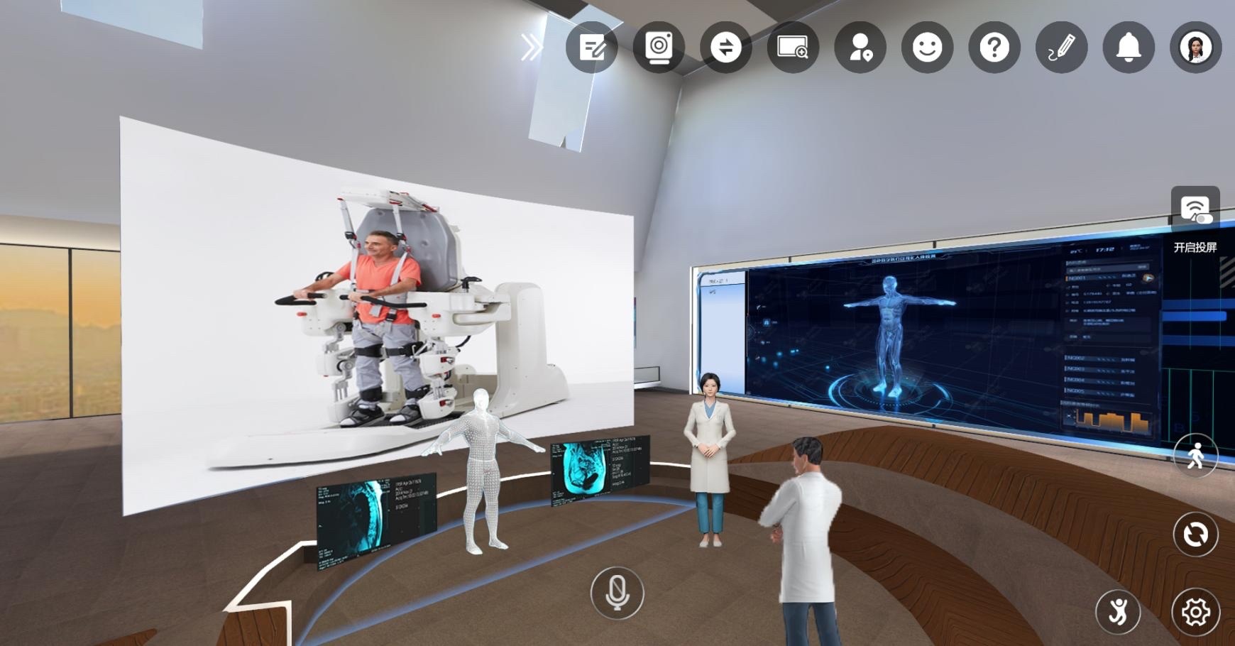 “就像推開一扇通往平行世界的門,這種‘在場感’是傳統(tǒng)遠(yuǎn)程協(xié)作難以企及的?!本S賽客首席運營官徐晨翔邊演示邊解釋道。他調(diào)出了VS·work中的“智聯(lián)康復(fù)元診療平臺”——這是維賽客在醫(yī)療元宇宙領(lǐng)域的創(chuàng)新應(yīng)用,集成了病情診療、康復(fù)訓(xùn)練、社交培訓(xùn)等功能。在虛擬界面中,醫(yī)生可以通過高精度空間定位系統(tǒng)“走進(jìn)”患者的虛擬診療室,患者則通過可穿戴設(shè)備完成肌力評估、平衡訓(xùn)練等動作,數(shù)據(jù)實時反饋至醫(yī)生終端,為偏遠(yuǎn)地區(qū)的患者提供了更加便捷、高效的診療服務(wù)。