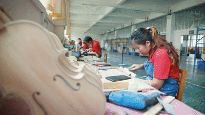 2015年以來,確山縣“筑巢引鳳”,發(fā)展制琴產(chǎn)業(yè)。王金堂等60余名制琴師陸續(xù)返鄉(xiāng)創(chuàng)業(yè)。如今,全縣共有提琴生產(chǎn)企業(yè)144家,形成從木材處理、配件雕刻到油漆噴涂的完整產(chǎn)業(yè)鏈,年產(chǎn)值突破6億元,出口創(chuàng)匯超千萬美元,帶動了2600余人在家門口就業(yè)。