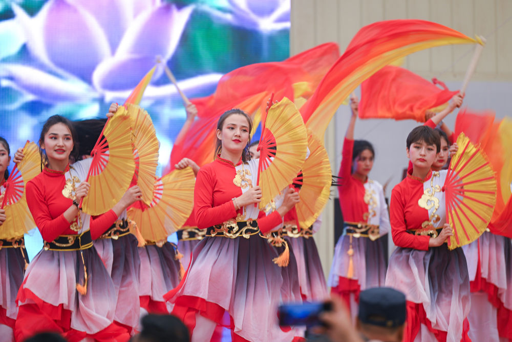 2025年5月30日,2025中國環(huán)塔國際拉力賽新疆喀什地區(qū)麥蓋提賽段歡迎晚會上的歌舞表演。新華社發(fā)(環(huán)塔組委會供圖)