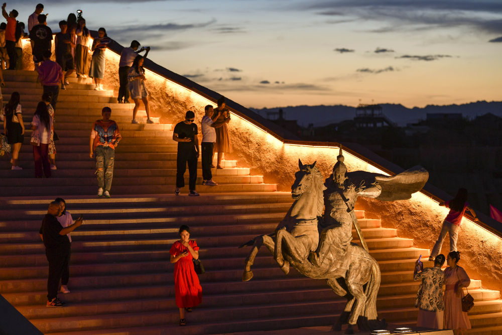 人們在新疆喀什市盤橐城景區(qū)內(nèi)游玩(2023年6月14日攝)。新華社記者 胡虎虎 攝