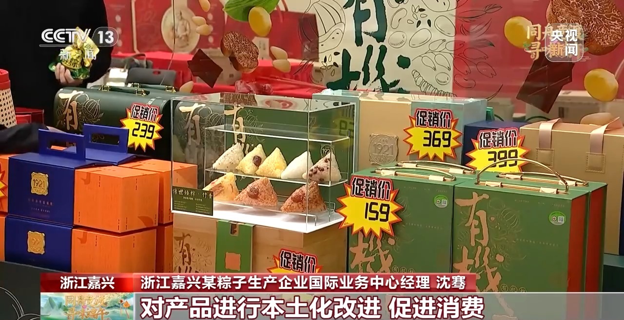 浙江嘉興某粽子生產(chǎn)企業(yè)國際業(yè)務(wù)中心經(jīng)理 沈騫:我們在直播中會展示粽子制作過程、食品溯源以及科普習(xí)俗,讓國外消費者了解粽子文化。我們還積極參加一些國內(nèi)外的展會,結(jié)合當(dāng)?shù)匚幕拖M習(xí)慣,對產(chǎn)品進(jìn)行本土化改進(jìn),促進(jìn)消費。今年,我們的粽子出口到了柬埔寨的商超和網(wǎng)購平臺,在韓國大棗粽和豆沙粽非常受歡迎。