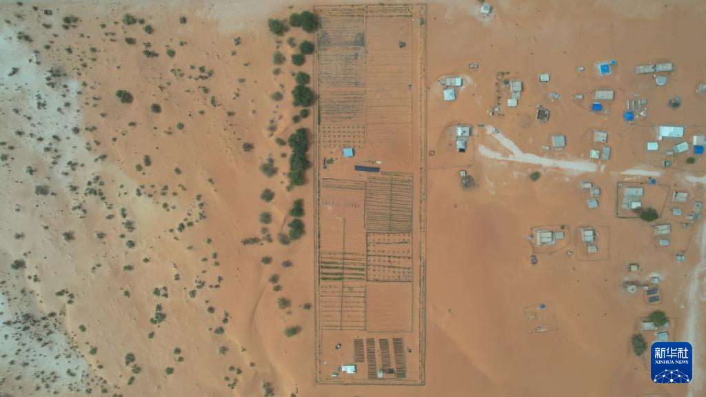 該示范項(xiàng)目由中毛雙方共同實(shí)施,中國(guó)科學(xué)院新疆生態(tài)與地理研究所提供示范區(qū)建設(shè)與后續(xù)技術(shù)支持。園區(qū)于2024年7月建成,占地4公頃,主要涵蓋外圍防沙阻沙區(qū)域、經(jīng)濟(jì)果林區(qū)、沙土蔬菜種植區(qū)、牧草種植區(qū)及家禽養(yǎng)殖區(qū)。比爾·巴爾卡村位于首都努瓦克肖特以東約70公里的沙漠邊緣。“我們當(dāng)初選址時(shí)就考慮靠近首都圈,便于技術(shù)展示和后續(xù)培訓(xùn)推廣?!痹H赴毛里塔尼亞參與項(xiàng)目建設(shè)的中方專(zhuān)家、中國(guó)科學(xué)院新疆生態(tài)與地理研究所沙漠研究團(tuán)隊(duì)成員周娜介紹說(shuō)。