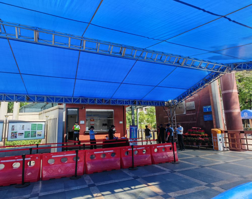 北京市氣象臺預(yù)報顯示,7日白天晴轉(zhuǎn)多云,最高氣溫32℃。北京一零一中學提前搭設(shè)紅色晴雨走廊,考生進入后可直通候考區(qū)及考場??紙鰞?nèi)還裝有空調(diào)和靜音排風扇,每間教室均有工作人員提前降溫、通風、消毒。