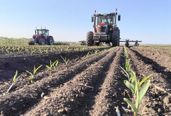 2025年5月23日,在北大荒集團黑龍江建設農場有限公司第三管理區(qū),農機工人駕駛搭載北斗衛(wèi)星導航自動系統(tǒng)的大型中耕深松機械,對剛出苗的玉米地塊進行深松放寒作業(yè)。新華社發(fā)(許穎獻攝)