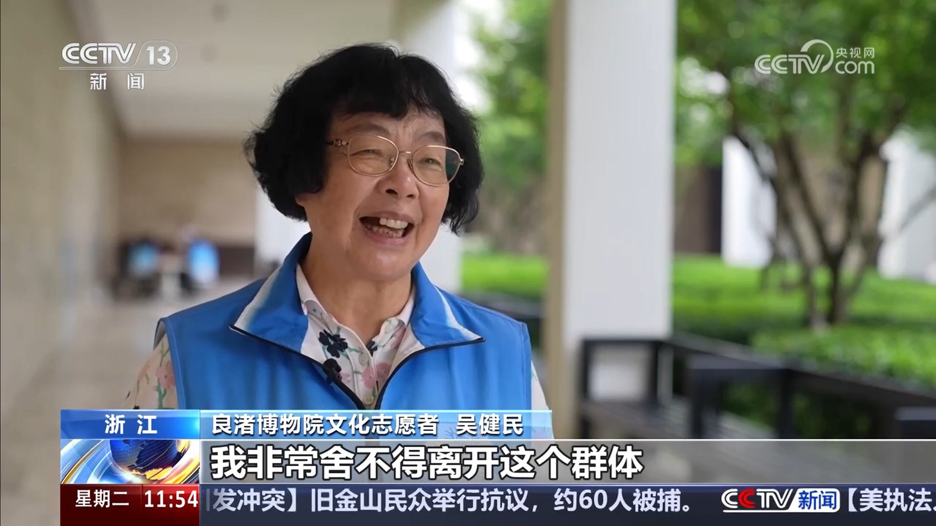 良渚博物院文化志愿者 吳健民:博物館就像一個(gè)老年大學(xué)一樣,大家在這個(gè)平臺(tái)上進(jìn)行交流,互相學(xué)習(xí),非常好的一種氛圍。只要我身體允許的情況下,我非常舍不得離開(kāi)這個(gè)群體。