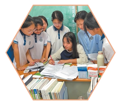 北京師范大學(xué)“優(yōu)師計劃”師范生張然(中)在實習(xí)時為學(xué)生講解輔導(dǎo)。 北京師范大學(xué)供圖