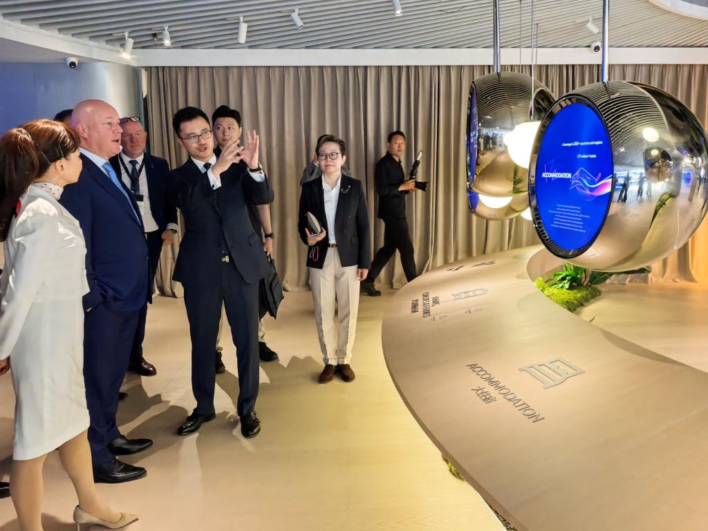 18日,正在上海訪問(wèn)的新西蘭總理拉克森(左二)在中國(guó)旅行服務(wù)企業(yè)攜程總部參訪。新華社記者吳宇攝
