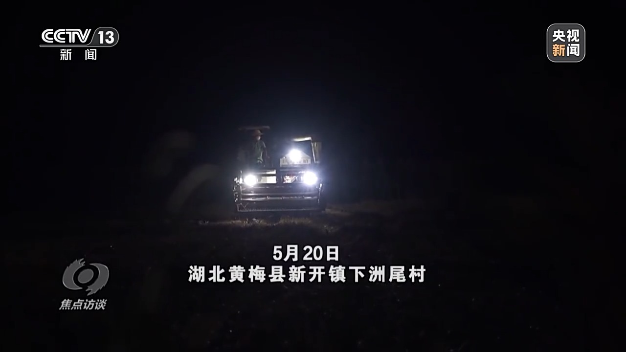 5月20日,湖北黃梅縣已經(jīng)進入小麥收割的尾聲,大部分農(nóng)戶已經(jīng)收割完小麥。突如其來的暴雨預(yù)警信息讓村民吳從先心急如焚:他家還有20畝小麥沒有收,只能連夜沖進麥田開始搶收。