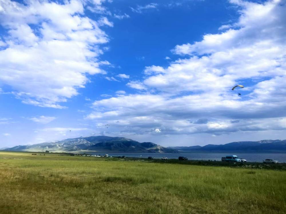 圖為6月25日拍攝的新疆博爾塔拉蒙古自治州賽里木湖和連云港—霍爾果斯高速公路。新華社記者 趙嫣 攝