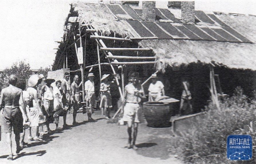 上海龍華集中營里,人們在排隊取水(資料照片)。新華社發(fā)(上海中學供圖)