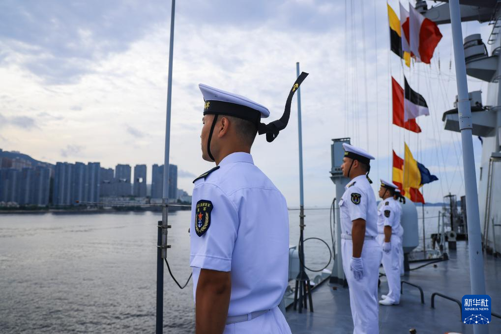 10時(shí),湛江艦放下舷梯,海軍和編隊(duì)有關(guān)領(lǐng)導(dǎo)及官兵代表踏上昂船洲軍營(yíng)碼頭,與前來(lái)歡迎的香港各界人士親切握手、互致問(wèn)候。歡迎儀式開(kāi)始,雄壯的國(guó)歌奏響。香港特區(qū)行政長(zhǎng)官李家超致辭,代表香港特區(qū)政府和香港市民,對(duì)海軍艦艇編隊(duì)的到來(lái)表示熱烈歡迎。中央港澳辦、中央駐港機(jī)構(gòu)、南部戰(zhàn)區(qū)、駐香港部隊(duì)相關(guān)負(fù)責(zé)人和代表出席儀式,并登上湛江艦、運(yùn)城艦參觀。