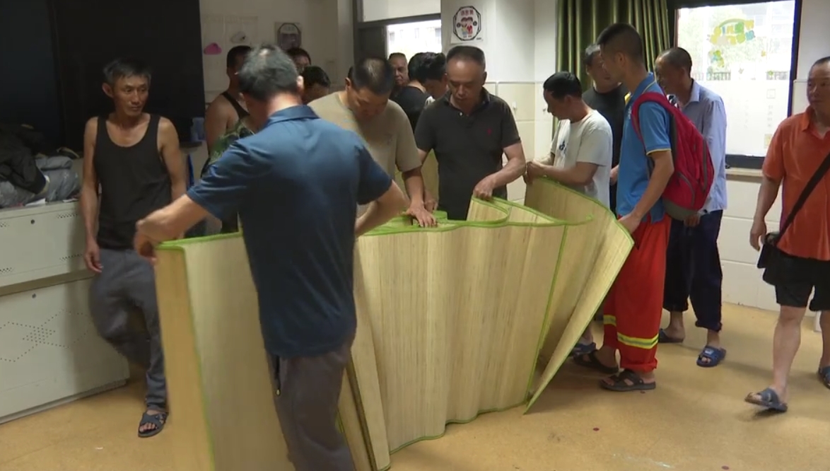 在溫州洞頭一處街道避災安置點,安置有57名甬莞高速的建筑工人。除了基本生活物資外,街道為工人們提供插線板、電蚊香等物資,確保他們在臺風期間能夠安心居住。