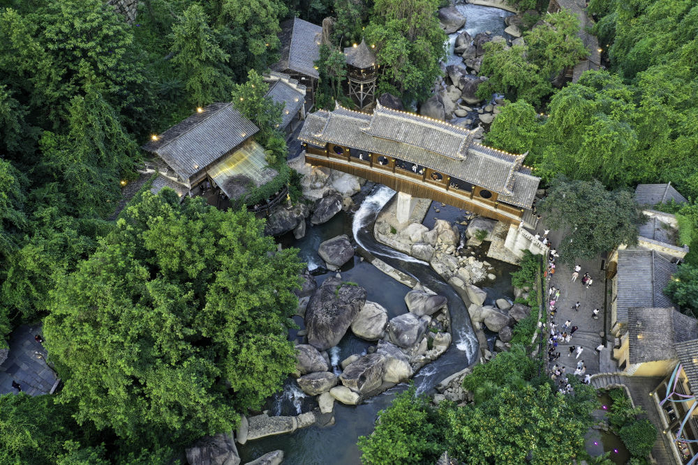 修復(fù)后的生態(tài)資源如何發(fā)揮經(jīng)濟(jì)效益?2010年,廣信區(qū)引進(jìn)九牛文旅集團(tuán),以峽谷漂流為旅游發(fā)展切入點(diǎn),花費(fèi)10多年時(shí)間一步步打造出一個(gè)集山水人文景觀(guān)、民俗體驗(yàn)、活動(dòng)演藝于一體的度假旅游區(qū)。九牛文旅集團(tuán)副總裁熊慧介紹,為了“給游客一個(gè)來(lái)的理由”,公司在110多米高的懸崖上凌空打造出“懸崖民宿”,客房的設(shè)計(jì)布局各不相同,房間地面不是傳統(tǒng)的地板,而是透明的懸空玻璃,游客站在床邊,低頭就能看到飛瀉的瀑布和流淌的溪水。