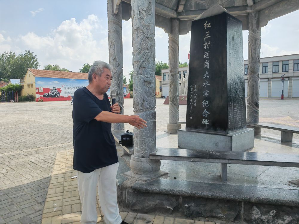 “1943年,日軍突襲劉崗村,嚴(yán)刑逼迫村民說出八路軍的秘密。眼看村民一個(gè)個(gè)被殺,冀魯豫邊區(qū)八路軍戰(zhàn)士秦興體站了出來,向侵略者高聲反抗,義無反顧獻(xiàn)出了生命……”在菏澤市曹縣韓集鎮(zhèn)劉崗村,74歲的義務(wù)講解員劉全義站在劉崗大水牢紀(jì)念碑前,動情講述著“紅三村”的抗日故事。